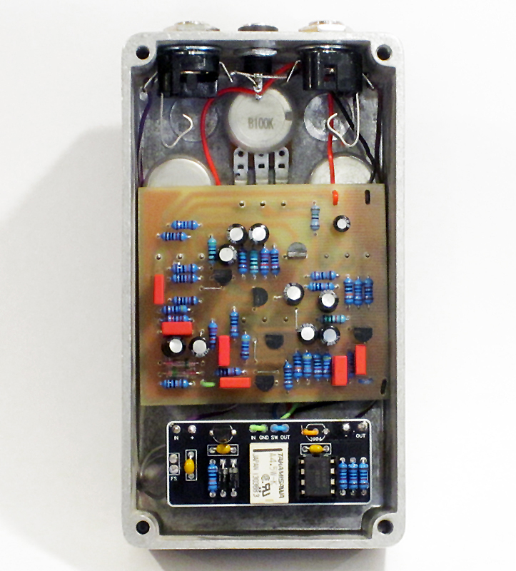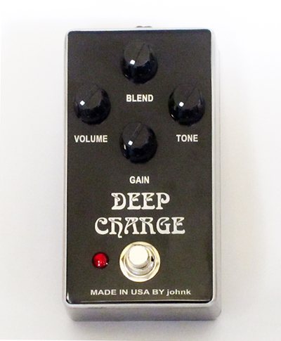 This is my clone of the original Prescription Electronics Depth Charge Bass Fuzz which are no longer available, getting very rare, and commanding very high prices these days ($700! and up). Mine comes in a much smaller black and silver 125B enclosure and uses the same 2N1307 transistors with the same knob layout and type as the original. I etched and tin plated my own pcb for it. It also has ALL top Lumberg jacks and high grade Wima capacitors and a relayed true bypass. This is the nicest sounding one that I've ever made
