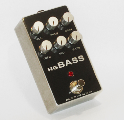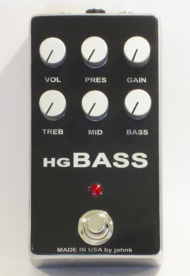 The HG BASS is a very high gain bass distortion pedal, using Mesa Boogie's distortion voicing. Unlike many other overdrive and distortion pedals, this one was NOT designed to be clean and it is NOT designed to be transparent (although it can get pretty close). Not for the faint of heart, it has a voice all of its own, with a full low end, but with accentuated mids to cut through the mix. It can be run with a low amount of distortion (somewhat cleanish), but the mid to high gain settings are where this pedal really shines. It doesn’t use diodes or opamps for its distortion, but rather 5 discreet Jfet transistors emulating a high gain tube amp being pushed into distortion. The controls consist of gain, presence, treble, mids, bass and volume. It is mounted in a blackfaced 125B with all top jacks and has a relayed true bypass. Due to the Jfets that are used in this circuit no longer being available, I am only going to be only making one for myself and two for sale. This pedal cannot be purchased anywhere else and is one (actually 4) of a kind. The one pictured is the one that you will receive. It can run on a power supply from 9-18volts. This build was made from scratch. I designed, etched, drilled and tin plated the main PCB, hand soldered all of the components, and labeled the enclosure, making it 100% boutique.